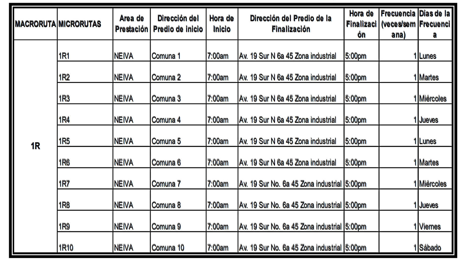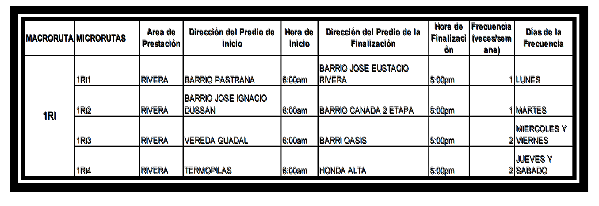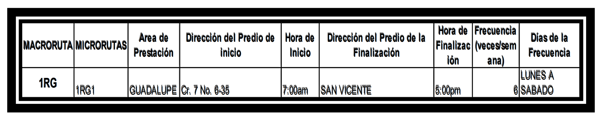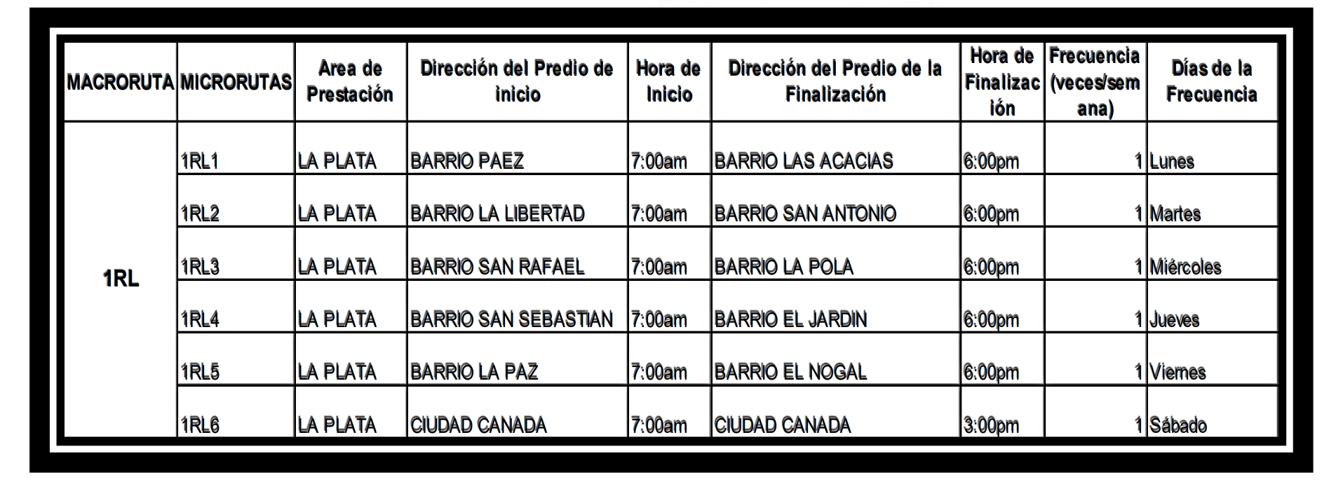 Cobertura, Rutas y Horarios